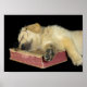 cachorro recuperador dorado durmiendo en un libro viejo con efecto blanco y negro
