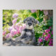 Póster Cachorro Schnauzer estándar en un jardín florecien