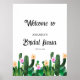 This welcome sign design is based on green cacti with light orange and pink flowers that gives design Mexican structure. Funny a bit and Elegant. This Bridal shower poster template combines two different fonts and their different size for more dynamic look.