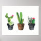 Esta huella de arte presenta cactus de acuarela y suculentos en macetas de color marrón y negro rústico. El color de fondo se puede cambiar para que coincida con la decoración de tu casa. Busque la impresión de arte compatible en nuestra tienda.