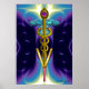 Póster CADUCEUS DE ORO VETERINARIO SÍMBOLO Azul Púrpura
