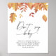 Invite a sus huéspedes con esta invitación a bañarse con una cascada de hojas con temática otoño. Utilice las herramientas de diseño para editar el texto, cambiar el color de fuente y el estilo para crear un diseño único de tipo invitación. Elementos coincidentes disponibles.