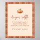 Haz que tu ducha de bebé de otoño sea extra especial con este adorable Poster Fall Plaid A Little Pumpkin Baby Diaper Raffle! Este lindo cartel anuncia tu rifa de pañales con estilo con su encantador tema de calabaza. Este delicioso poster de rifas de pañales marca la pauta para la celebración de su bebé de otoño. Los irresistibles gráficos de calabaza y los tibios estampados de yeso le dan un toque acogedor y agradable, ideal para dar la bienvenida a un pequeño en el camino. Cuelga este poster en tu ducha para que los clientes sepan de tu concurso de premios a la rifa de pañales. ¡Seguro que generará emoción y participación! Ideal para cualquier madre que tenga una ducha de bebé inspirada en la caída, este signo de bonito hace que su decoración fiesta brille. ¡Es una manera divertida y festiva de difundir la palabra sobre tu rifa de pañales!