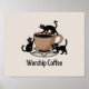 El café, para muchos, es más que una bebida; es un ritual, una necesidad, y tal vez hasta un objeto de culto. El rico aroma por sí solo puede ser intoxicante, prometiendo una sacudida de energía y un momento de consuelo. El acto de preparar café, ya sea el proceso meditativo de diluviar o el ritual comunitario de una prensa francesa, puede ser una fuente de consuelo y rutina. Para algunos, la fiebre de cafeína es similar a una intervención divina, que elimina la fatiga y desbloquea la creatividad. Desde el momento en que el primer sorbo golpea la lengua, desciende una sensación de calma y concentración. El café, en sus diversas formas, se ha convertido en una parte integral de la vida moderna, un sacramento diario que alimenta nuestros cuerpos y mentes, y para muchos, una fuente de silenciosa adoración... culto, bebida, cosecha, oculto, café de culto humorístico, años 80, cristiano, horror, años 70, retro, vintage de café de culto, nostalgia, ritual, entusiastas del café, café humorístico, zoomías de café, café de culto fresco, café de culto estético, café de culto divertido, divertido