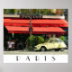 Automóvil francés vintage estacionado afuera de un pintoresco café parisino