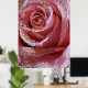 Una rosa rosa rosa rosada oscura lanza gotas en un día de primavera, fresco como el rocío matutino.