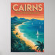 Cairns retro vector travel design. Cairns is a city in Queensland, Australia, on the tropical northeast coast of Far North Queensland. It was founded in 1876 and is considered the gateway to Australia's Great Barrier Reef and the Wet Tropics Rainforest.
