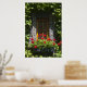 La bonito Red Geranium Window Box Print hace una idea de regalo floral para un amante de las flores, jardinero o florista. Esta hermosa estampada de flores personalizados presenta una fotografía pintoresca de la naturaleza de una ventana llena de flores rojas de geranio con viñas verdes, hojas y follaje.
