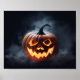 Asustada poster de calabaza con niebla en un fondo negro. Espectacular decoración de la casa de Halloween. Se puede imprimir la descarga digital. Los marcos mostrados son sólo para referencia, no incluidos y no escalados.