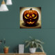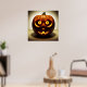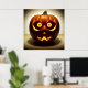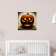 Calabaza tallada y luminosa con una expresión espeluznante, perfecta para temas, decoraciones y fiestas de Halloween.