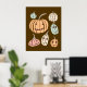 Añade un poco de color otoñal o otoñal a las paredes con este adorable poster. Cuenta con ilustraciones simples de calabazas en naranja, verde menta pálido, amarillo pálido y rosa con tallos color marrón y ojos marrones lindos con sonrisas costidas de estilo jagado.