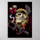 Póster Calavera con casco, aviones y bombas