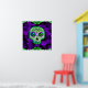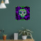 Póster Calavera de azúcar verde y morada con iluminación
