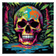 A.I. creado la impresión de un cráneo multicolor vibrante está rodeado de hojas verdes exuberantes, creando un sorprendente contraste entre elementos naturales y imágenes psicodélicas y surrealistas.