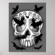 Calavera de azúcar decorativa, elemento con el logotipo de Dia De Los Muertos con cuerdas, ravens, murciélago ensamblados para componer un espeluznante diseño vectorial de Halloween. Original Art Copyright BluedarkArt TheChameleonArt.