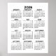 Póster Calendario - Básico Minimalista Blanco y Negro