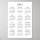 Póster Calendario Clásico en Negro y Blanco Simple Básico