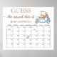 Póster de calendario de adivinanza de fecha de parto en Baby Shower de osito de peluche.