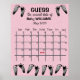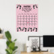 Huellas negras de bebé sobre fondo de lunares rosados y blancos para juego de Baby Shower. El mes con números es editable. El fondo se puede cambiar.