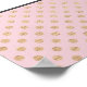 Ositos de peluche lindos con baberos azules en patrón de lunares rosados y dorados para juego de Baby Shower.