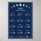 Póster de Calendario de Arte Minimalista de Color Azul Oscuro de Fase Lunar de 2026