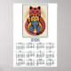 Un calendario lindo para 2026. Arte de gato con un toque de arte popular, que representa a una gata y su familia de gatos en colores de arcoíris. Creado por Scarebaby Design, todos los derechos reservados.