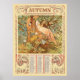 Póster Calendario de Otoño Art Nouveau de la Era Victoria