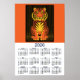 Póster Calendario del Tigre Dramático Naranja Tigre Negr