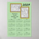 Imágenes de su reunión adornan la parte superior de este calendario de carteles (dos imágenes enmarcadas). Calendario 2025 en la parte inferior. Personalice el texto para el nombre del evento - ¡agregue una fecha o ubicación también! Sobre fondo verde.
