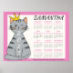 Póster Calendario Mensual 2025 Lindo Rosa Nombre Gato Jug