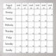 Póster calendario planificador de agosto de 2020 con núme