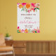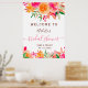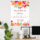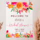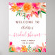 Moderna acuarela de color floral giratorio bienvenida ducha de novia con naranja brillante, melocotón, flores rosadas y verdes ramo y elegante letra de guión.