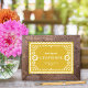 Este elegante y moderno papel papel, símbolo de la recepción de boda, presenta un hermoso marco ornamentado en blanco, un colorido fondo amarillo cálido y una tipografía festiva. Personalizar esta plantilla como un signo de mesa para favores, libro de visitas, menú, buffet, etc. El tamaño predeterminado es de 5" x 7", lo que se adapta perfectamente a un marco fotográfico de tamaño estándar que se puede colocar sobre una mesa. Este elegante y moderno diseño es una fabulosa elección para una boda de boda o destino en México. Todo el texto es personalizable, sólo tienes que hacer clic en el botón "personalizar" del texto. Vea la colección para más piezas coordinadas!