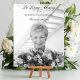 Recuerda a ese ser querido especial en tu ceremonia de boda que ya no está aquí en persona. La plantilla de foto presenta campos de texto editables y un gráfico de texto de caligrafía "In Memoriam" personalizado.