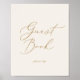 Este póster de libro de invitados de crema con caligrafía dorada delicada es perfecto para una boda moderna. El diseño minimalista romántico presenta una tipografía amarilla dorada champán elegante y encantadora sobre un fondo crema marfil con un aspecto limpio y simple.