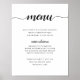 Elegante menú de señalización en blanco y negro clásico muestra su selección de cena en caligrafía de moda y letras tradicionales en bloque. Perfecto para bodas y eventos especiales, el menú ofrece una distribución sencilla y fácil de personalizar.