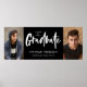 Modern Calligraphy Black Two Photo Graduation poster es perfecto para anunciar los logros de tu graduado. Con dos fotos y letras caligráficas modernas.
