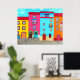 La primera de la serie: Encantadoras, coloridas y altas casas de piedra en una escena de calle adoquinada de la ciudad medieval de Bosa, Cerdeña.