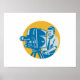 Cámara de TV con cámara de cine Ilustracion retro de un camarógrafo de televisión que filma con cámara de cine hecho en estilo retro dentro del círculo.