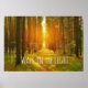 Caminata inspiradora en la Biblia ligera contra Posters. Camine por el versículo de la Biblia clara en una hermosa escena natural con el sol brillando en un camino a través del bosque de árboles. Posters de la cita cristiana.