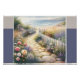 Esta acuarela de ensueño captura un sendero de piedra iluminado por el sol que serpentea a través de un frondoso jardín de cabañas rebosante de rosas, foxglove y lavanda, que conduce a una playa tranquila con marea baja. Las suaves olas brillan bajo un cielo pálido, mientras que un acogedor banco y una cesta de mimbre escondidas entre cercas blancas de piquete le dan una sensación de confort hogareño. La escena está bañada por un suave resplandor, con tonos pastel y texturas de pintura que aportan paz y nostalgia a la vida. Ideal para los amantes de la belleza de la costa, la tranquilidad del jardín y la tranquilidad junto al mar. La IA generó obras de arte.