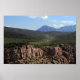 Una curva de carretera hacia los picos del West Elk Mountain, parte de las Montañas Rocosas, desde la llanura norte del Cañón Negro del río Gunnison en Colorado. El nombre del cañón se debe a que partes de la garganta sólo reciben 33 minutos de sol al día. El río Gunnison desciende un promedio de 10 metros por milla (6,4 m/km) a través de todo el cañón, lo que lo convierte en el quinto descenso de montaña más empinado de América del Norte. En comparación, el río Colorado desciende un promedio de 7,5 pies por milla (1,42 m/km) a través del Gran Cañón. El descenso más grande del río Gunnison se produce dentro del Cañón Negro del Parque Nacional Gunnison en Chasm View, bajando 70 metros por milla (45 m/km). En su punto más estrecho, el cañón sólo tiene 12 m de ancho en el río.