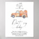 "¡Una calabaza está en camino!" Invitación a calabazas acuarelas con un camión naranja lleno de calabazas. Elementos coincidentes disponibles.