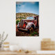 Foto de una vieja camioneta oxidada podriéndose en un valle.