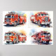 Poster de arte en la pared infantil de Camiones de Fuego Rojo