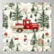 Un bonito y clásico diseño de invierno con un camión rojo vintage, árboles, nieve y un muñeco de nieve.