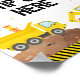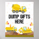 Este adorable diseño cuenta con camiones de construcción y confetti colorido.