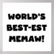 Texto negro y camisetas del Mejor-est Memaw del mundo blanco del texto, tazas, sudaderas con capucha, tarjetas, las bolsas de asas, imanes, recuerdos, y el mejor engranaje del memaw del otro mundo. ¡Grandes regalos para grande - abuelos!