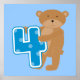 Un adorable oso de peluche con un gran número para representar la edad de su hijo en camisetas de cumpleaños 4, bibs, botones, bolsos, tarjetas, pegatinas, keepsakes y otros artículos de regalo y ropa de cumpleaños 4.