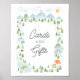 Muestra a amigos y familiares dónde dejar sus tarjetas y regalos en el fiesta de primer cumpleaños de tu pequeña con este cartel temático de camping, que incluye montañas de acuarela, pinos y paisajes.